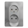 Розетка двойная Glossa (в сборе, цвет алюминий) без заземления и без шторок подходит для сетей 250 В, на ток 16 А. - Выполнен из материала PС+ASA, стойкого к УФ-излучению и появлению царапин. - Эргономичные клеммы розеток расположены в один ряд. - Двойная розетка позволяет подключить два устройства в одном месте.