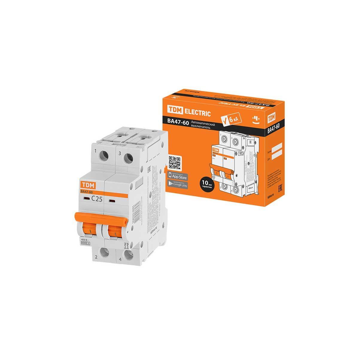 Автомат. выключатель TDM 2Р C25А ВА47-60 6кА